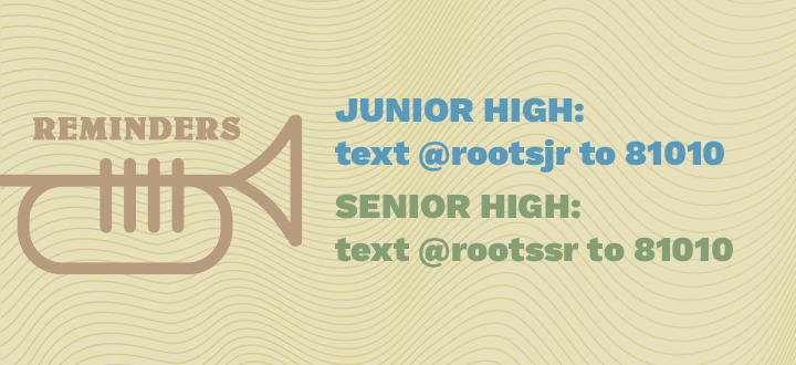 At Roots Student Ministry we believe that the junior and senior high school years are a vital time for spiritual development in the lives of our students. It is a time when students have legitimate, real questions about life, who they are, and even their own faith. It is a time of searching for their own identity in society, finding where they fit in, and sorting out their beliefs. Some students truly thrive at this age, while others hold on for dear life.