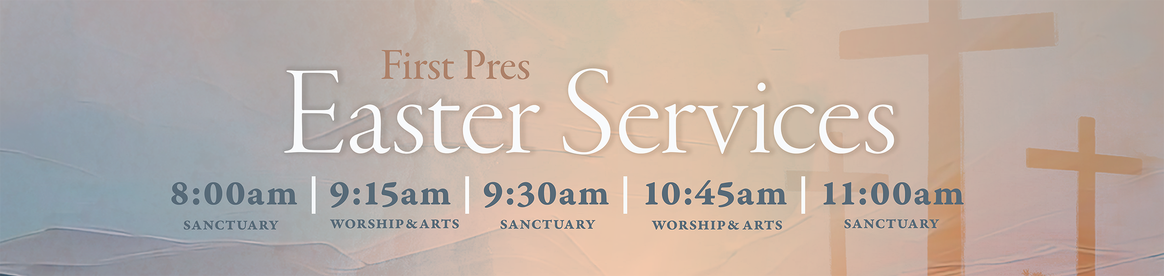 Easter Sunday, April 5 Click here for livestreaming 8:00am Sanctuary 9:15am Worship & Arts Center 9:30am Sanctuary 10:45am Worship & Arts Center 11:00am Sanctuary This Easter Sunday, we warmly invite you to celebrate the joy and hope of the resurrection at one of our morning services. Our Easter worship will feature beautiful music, inspiring messages, and a welcoming community of believers. Whether you're a lifelong member or visiting for the first time, we would love for you to be part of this special morning. Bring your family, friends, and neighbors to this celebration of faith, renewal, and the incredible gift of hope and grace that Easter brings. We look forward to worshiping with you and growing together in the love of Christ! FOR CHILDREN: A nursery is available for all services. There will be no Sunday School for K5-5th grade Children up to K4 may attend Kids Church during all five worship services. Children K5 and older should attend worship with their parents.